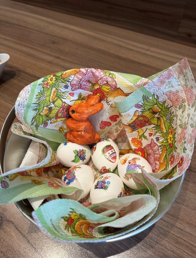 Natürlich bringt der Frühling auch viele kreative Aktivitäten mit sich. Mit Vorfreude haben wir auf den Osterhasen gewartet. Ostereier wurden bemalt, mit Ton Osterfiguren gestaltet und festliche Dekorationen gebastelt. Der Fantasie sind dabei keine Grenzen gesetzt.